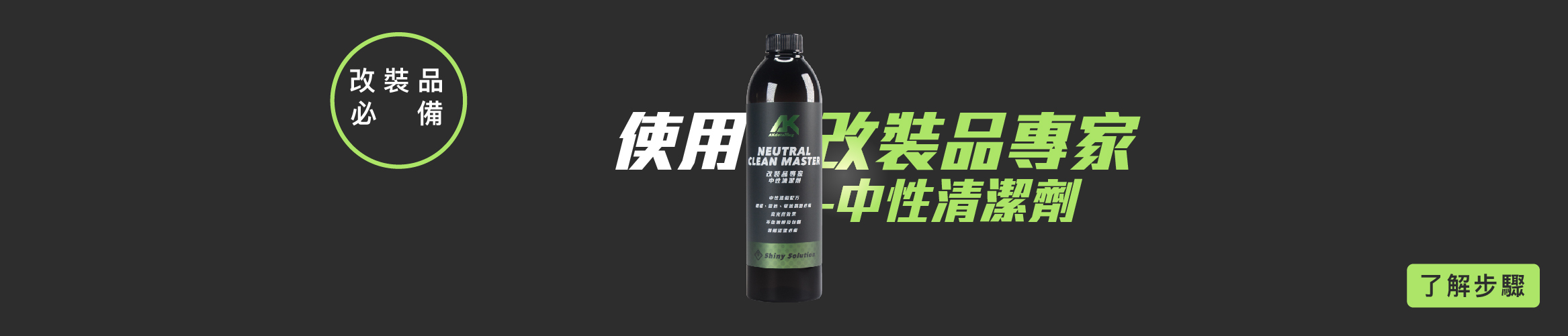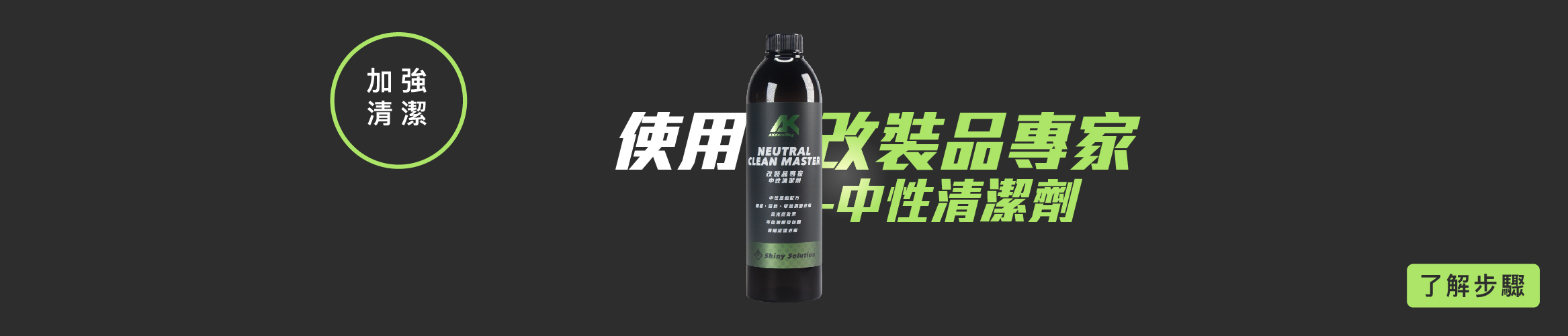2. 如欲加強車身清潔,可於沾取泡沫精後,搭配AK萬用清潔劑或AK中性清潔劑噴灑於洗車手套上刷洗,可提升車身清潔度