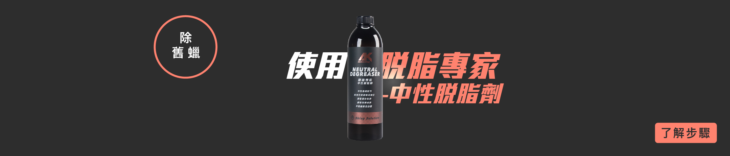 如欲去除車身上的舊蠟,可使用AK中性脫脂劑來清除喔