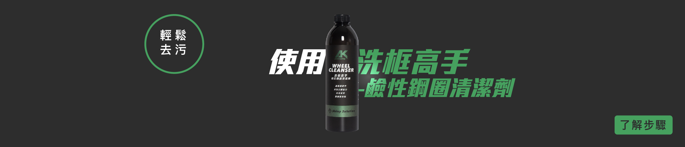 輪框的清洗分為一般輪框及改裝品,一般輪框採用AK洗框高手,即可達到高光亮效果;陽極、鍛造、電鍍輪框,則建議使用AK改裝品專家-中性清潔劑來做清洗,才能在不傷改裝品的情況下,達到輪框光亮清潔的效果喔!