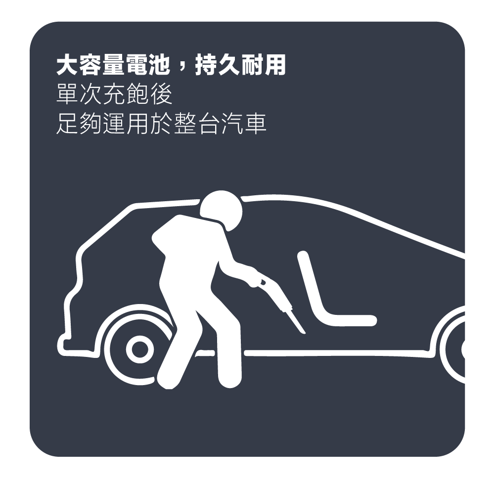 單次充飽後,足夠運用於整台汽車