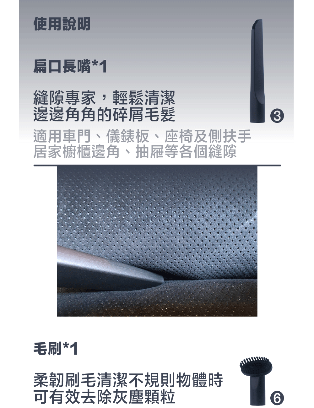 提供多種吸頭,滿足各種清潔需求