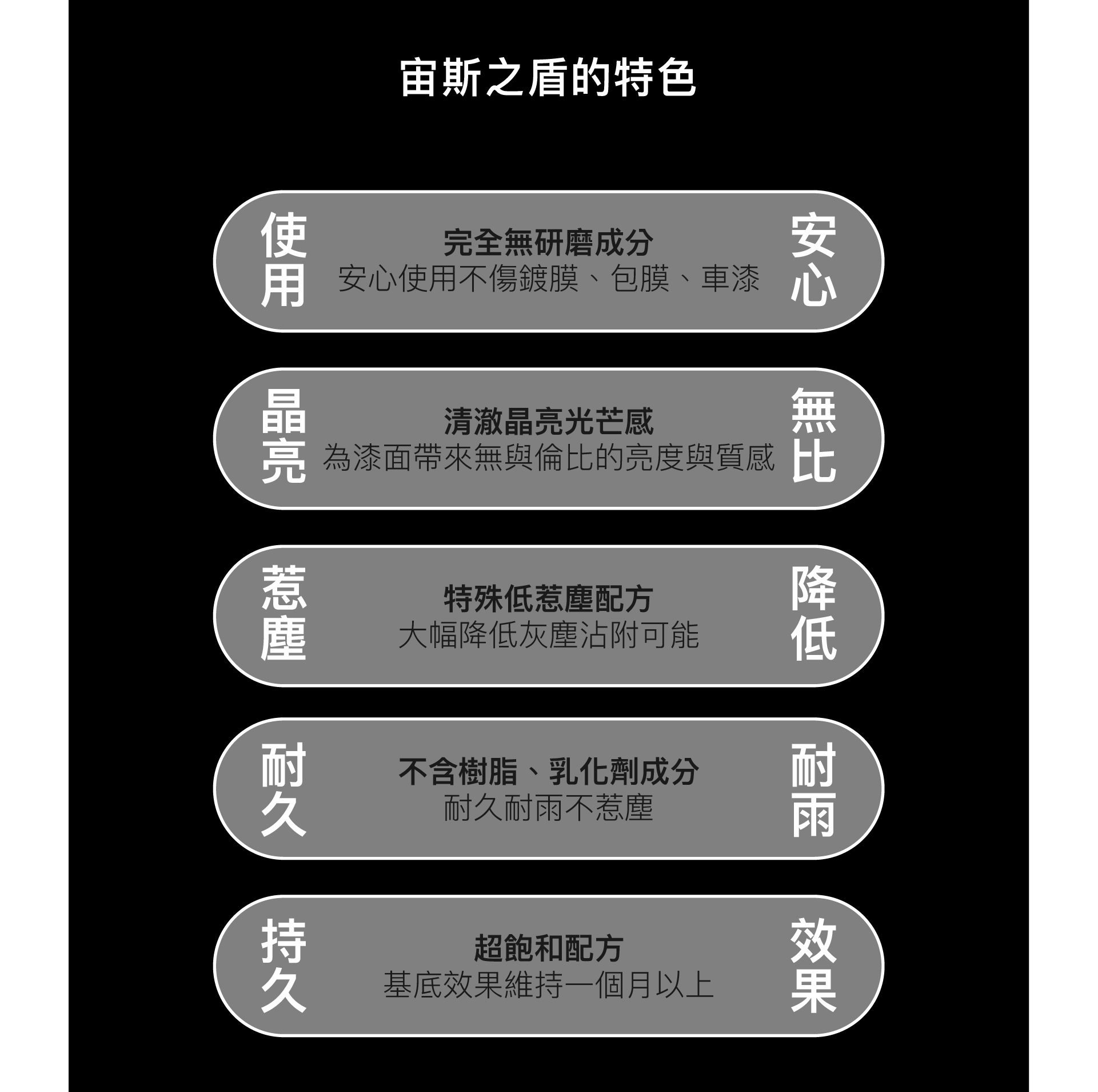 提供耐久保護力,達到耐久光亮與防塵