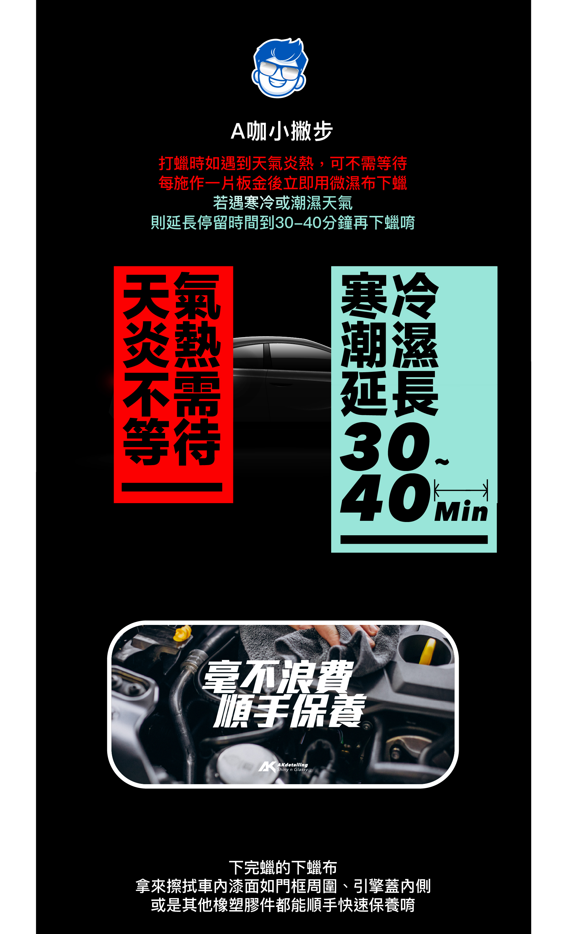 ②上蠟綿及下蠟布請務必清洗乾淨,避免影響上下蠟效果或誤傷愛車。