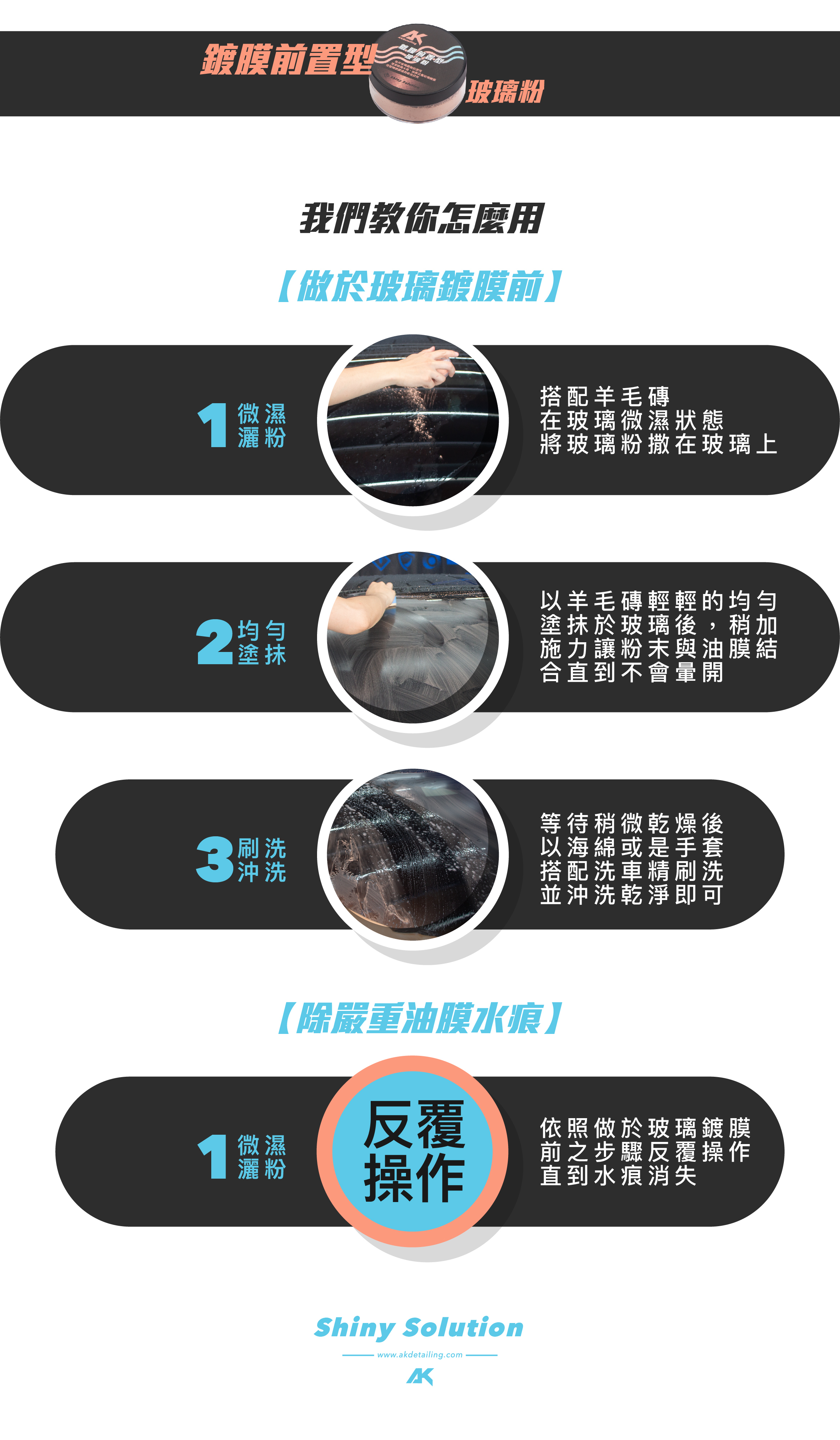 ● 除水痕水漬→鍍膜前置型-玻璃粉